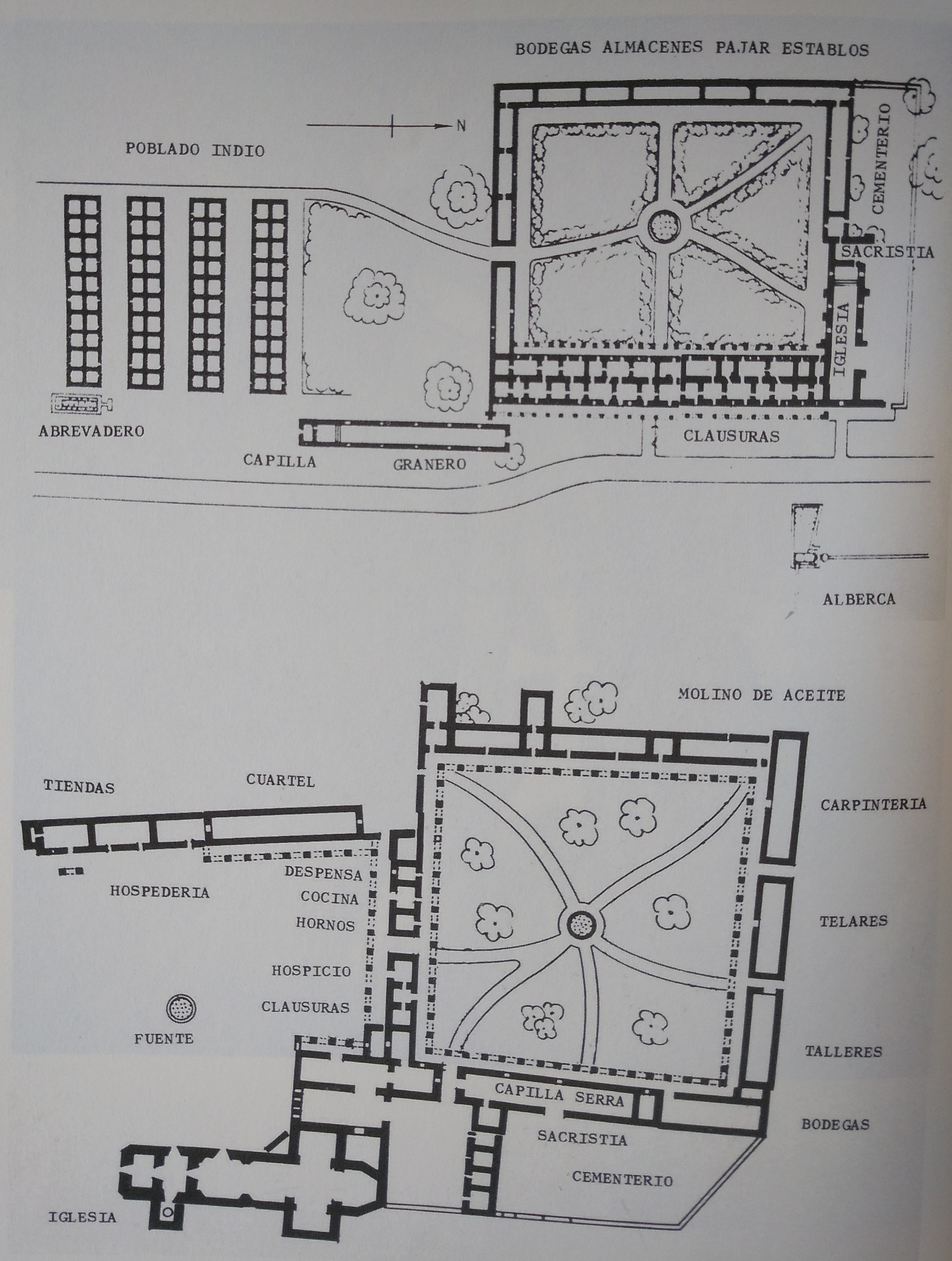 A lo largo de treinta y dos proposiciones el fraile franciscano se detiene mayormente en cuestiones logísticas, imprescindibles para el buen funcionamiento de las misiones. Ciertamente, después de los elogios a su católica majestad, el rey Carlos III, fray Junípero repasa el estado general de la situación. Las vías de tránsito, tanto marítima como terrestre, son presentadas como asuntos de primer orden para sostener la labor misionera. La provisión de alimentos, utensilios de labranza y ganado se revelan capitales para la subsistencia de sus habitantes, sobre todo los amerindios. Y es que el objetivo de las misiones, diseñadas a modo de pequeñas ciudades, consistía en allegar a la población indígena concentrándola en dichos núcleos a fin de instruirlas en los presupuestos informantes de la civilización cristiana. Para ello debían resultar atractivas, acondicionando las viviendas, talleres y graneros, además de los servicios médicos y catequéticos, con la iglesia-capilla como centro neurálgico de su estructura[20]. Dicho patrón no distaba en exceso del promovido en España por los reinos cristianos durante la Reconquista con las Cartas de Población[21]. Realmente se adaptaba un modelo preexistente a las circunstancias de la California Septentrional: